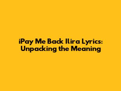 IPay Me Back Ilira Lyrics: Unpacking The Meaning