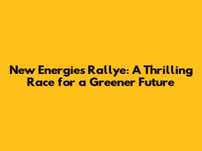 New Energies Rallye: A Thrilling Race For A Greener Future