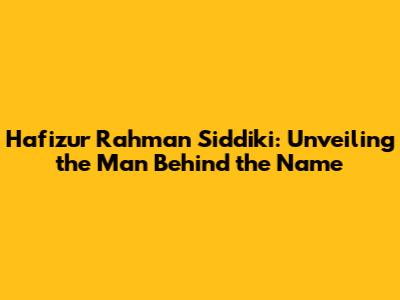 Hafizur Rahman Siddiki: Unveiling the Man Behind the Name